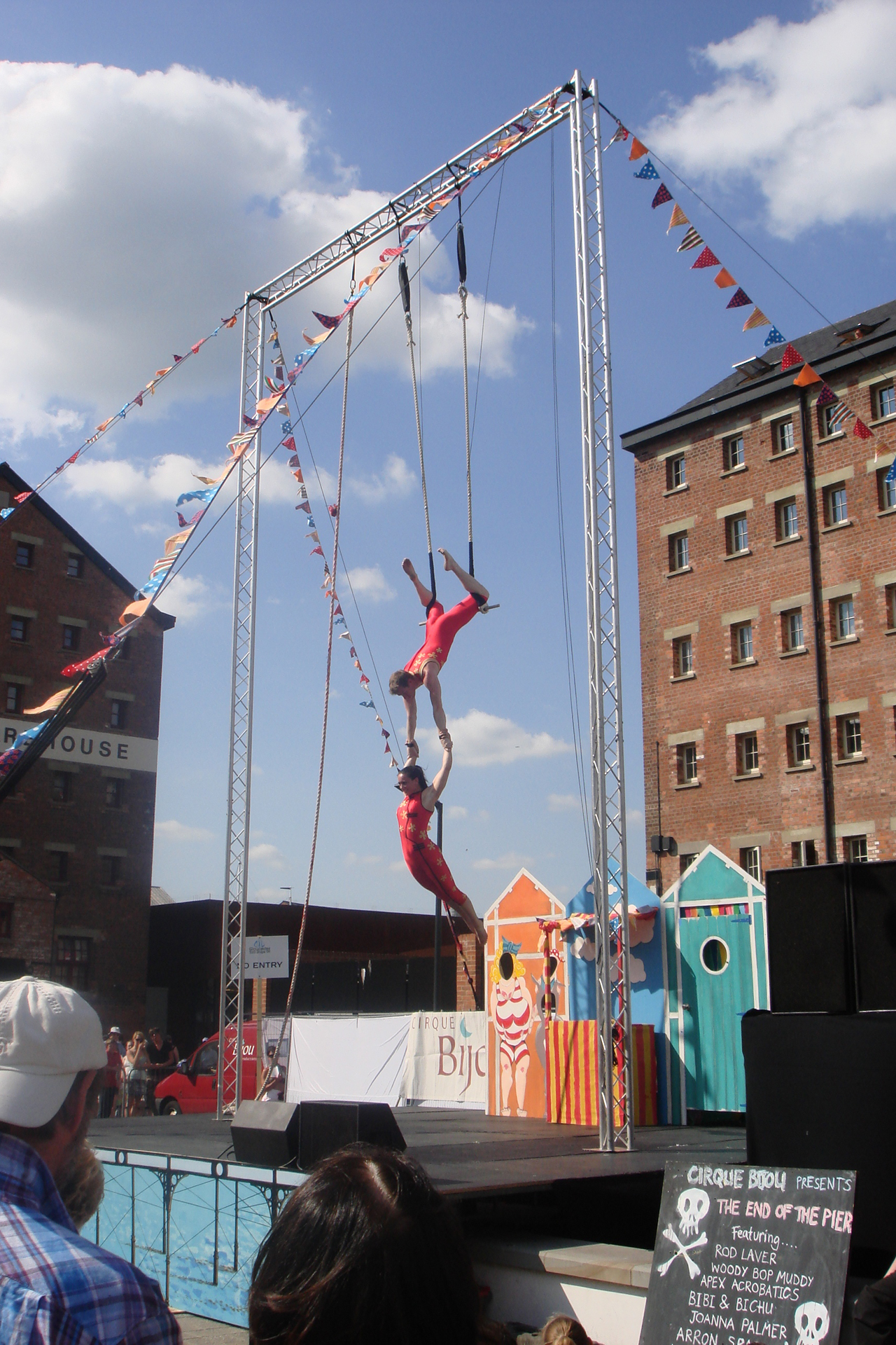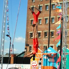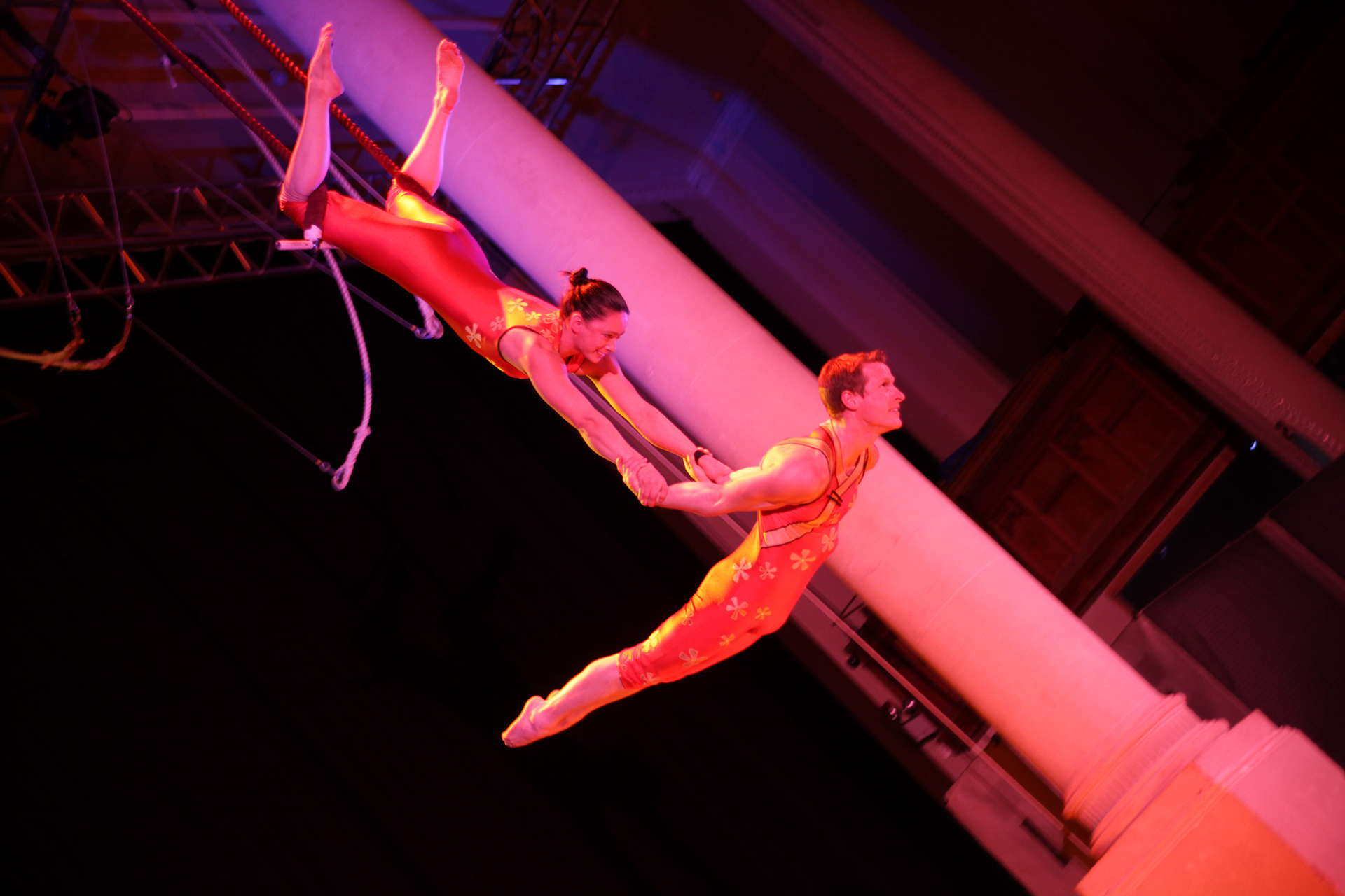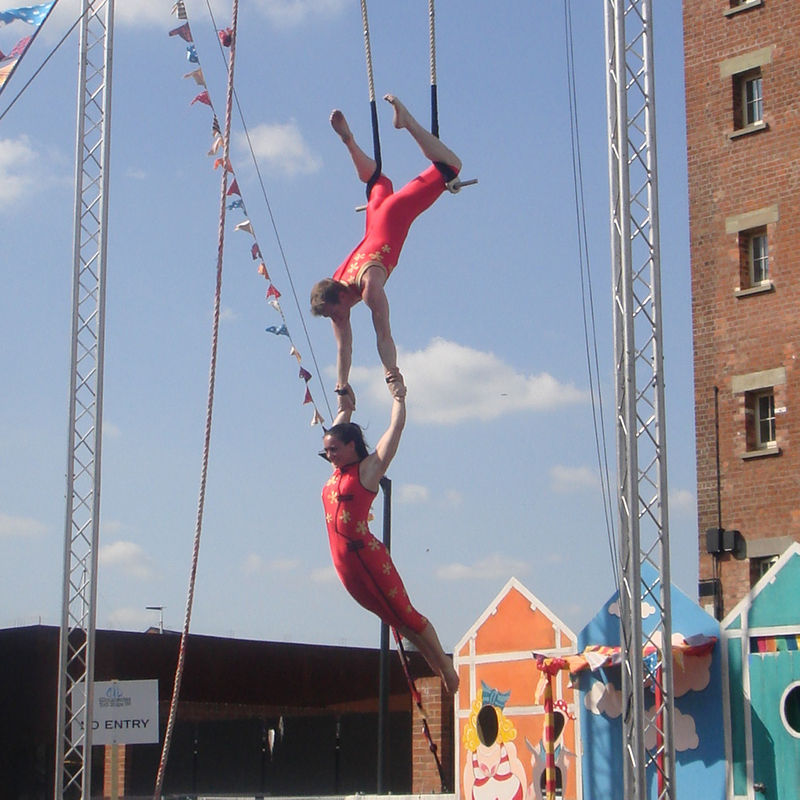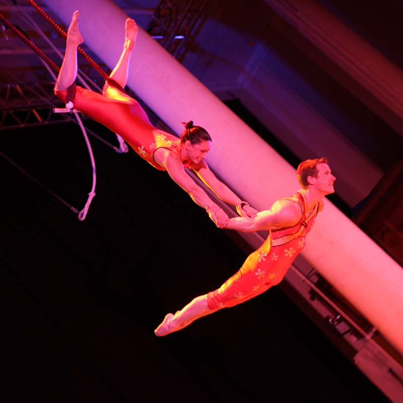 High up in the air with no safety net, the two performers swing from eachother and go through heart-stopping catches and amazing feats of strength while entertaining and uplifting the crowd.